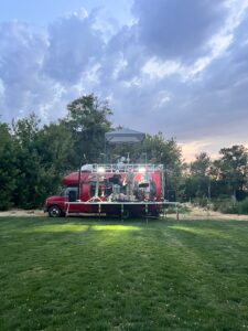 About 11 years ago I asked God for 20 years of significance. Then I got my first bus. Due to many generosities, it has been painted red, saddled with a big aluminum stage and filled with a livable interior and electricity.